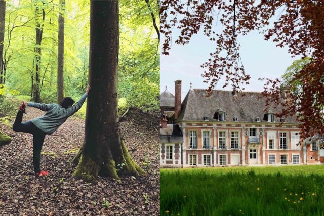 Au programme, il y aura des asanas en contact avec les arbres en utilisant des postures de hatha yoga et yin yoga. Se dérouleront des méditations au lever (ou au coucher) du soleil, des balades avec découverte de la forêt, de la marche afghane, des marches des cinq sens, silencieuses et méditatives. Les participants pourront (avec un peu de chance) apercevoir des animaux sauvages (biches, cerfs…). Le Land art permettra de développer sa créativité artistique de manière ludique en interaction les uns avec les autres. Selon l’heure de la journée et la température extérieure, les séances de yoga se poursuivront dans le parc ou l’un des très beaux salons du château. Cette retraite s’adresse aussi bien aux débutants qu’aux adeptes du yoga et de la sylvothérapie. L’absence de compétition, l’entraide et le goût de la progression par rapport à soi-même seront au cœur de la pratique dans un cadre bienveillant et ludique.